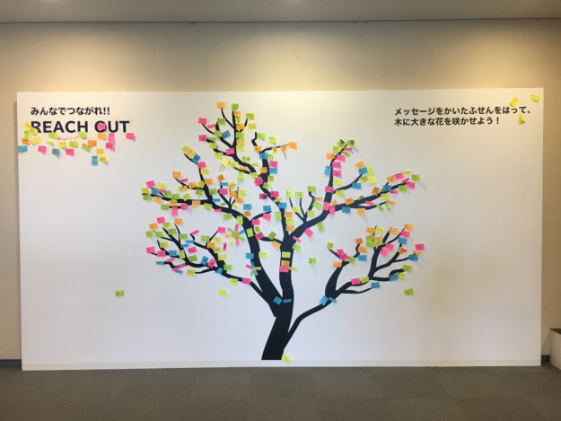 付箋にメッセージを書いて、木に貼ります。