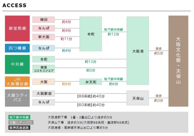 アクセス・地下鉄:中央線「大阪港」駅下車1番・2番出口より徒歩約5分