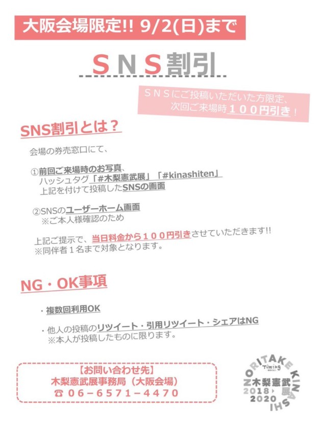 以上を会場券売窓口にて提示すると、当日料金から100円引き!
